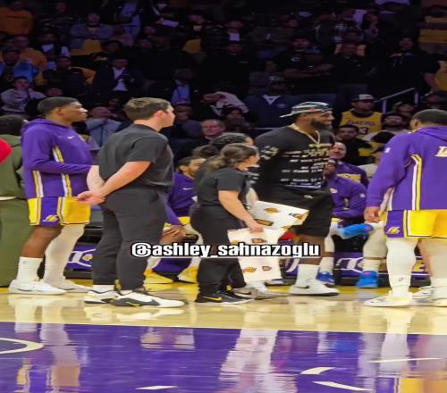 詹姆斯今日场边花絮:假装投篮后惬意运球从座位跃起庆祝进球